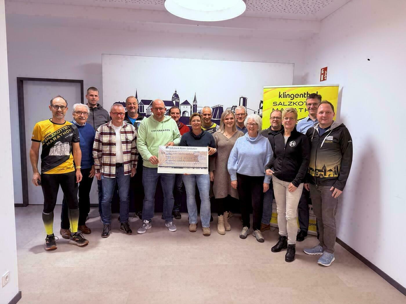 Vor Kurzem fand im Rathaus die feierliche Scheckübergabe an die Salzkottener Vereine statt. Der Verein zur Förderung des Sports in Salzkotten e. V. überreichte insgesamt 7.400 Euro unter anderem an den TV Salzkotten Basketball, das Kampfrichter-Team, die Mohnkicker Salzkotten, die Montessorischule, RW Verne, den SCC Scharmede, SV Upsprunge, SV Verlar, TC RW Salzkotten, TSV Tudorf, VfB Salzkotten und die Kolping Karnevalisten. Zusätzlich wurden 1.500 Euro an die Stammvereine ausgeschüttet. „Wir freuen uns, dass die Jubiläumsausgabe unseres Marathons so erfolgreich war und wir die örtlichen Vereine mit dieser Summe unterstützen können“, erklärte Sascha Wiczynski, Organisator des Salzkotten Marathons.